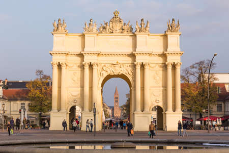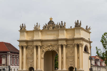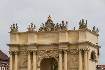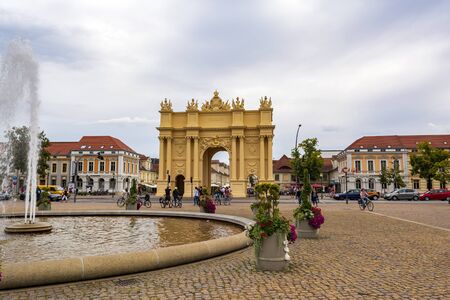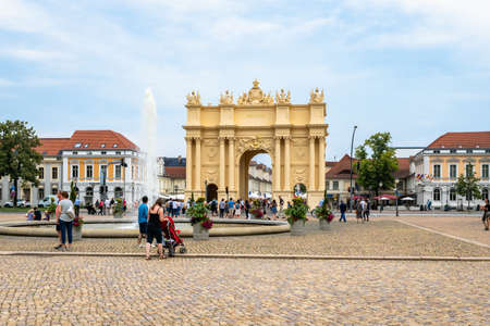 Potsdam, Germany - July 2019: Brandenburg Gate (Brandenburger Tor) in center of Potsdam, a historical site for tourists and visitors.