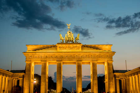 Berlin Brandenburger Tor Brandenburg Gate in Germany at night blue hour panoramic view twilight
