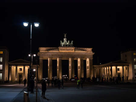 Brandenburg gate, Berlin, Germany at night. Road side view