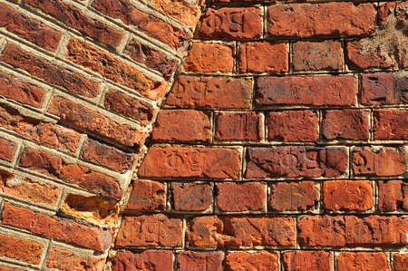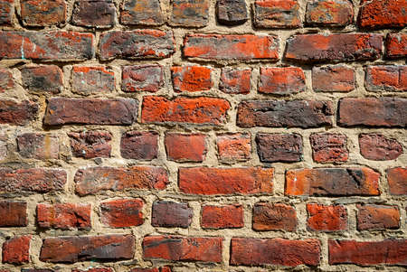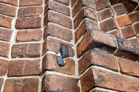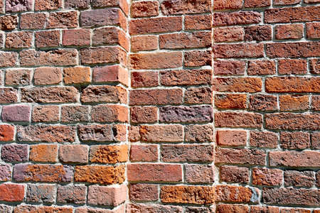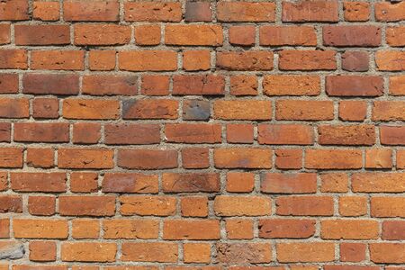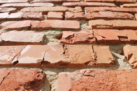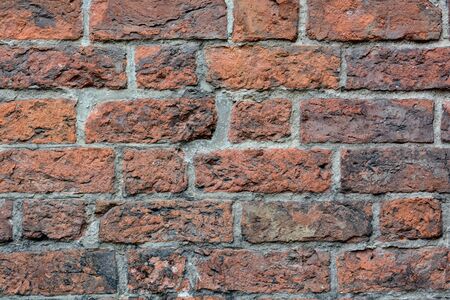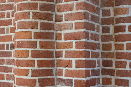 Brick background. Old red brick wall. Architectural elements. Horizontal photo. Close-up.