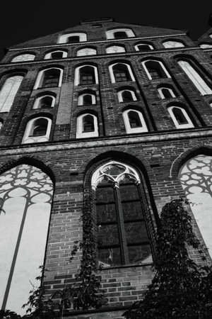 Catholic Cathedral. Russia, Kaliningrad. Black and white photo
