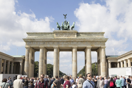 Berlin - AUGUST 4, 2013: Brandenburg Gate on August 4 in Germany, Berlin. Brandenburg Gate is a popular tourist attraction in Berlin