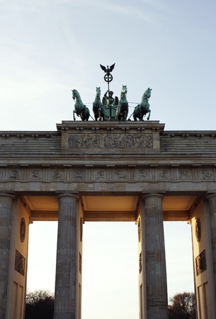 A photo detail of the Brandeburg Gate at the sunset, Berlin
