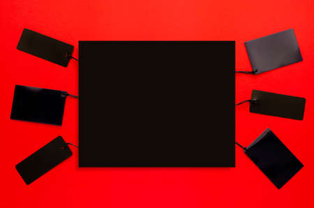 Red crafting small envelope on black background. A stylish concept of minimalism
