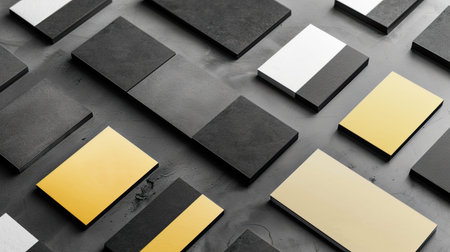 Black business cards blank on textured background. Identity design, corporate templates, company style. Flat lay