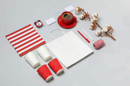 Mockup business brand template on light gray background, space for text