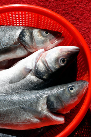 Fresh fish, Seabass, seasoned with spices, garlic and salt.