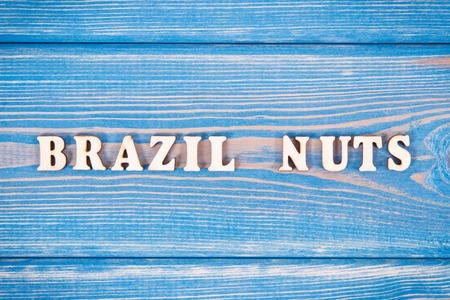 Inscription brazil nuts on old blue boards