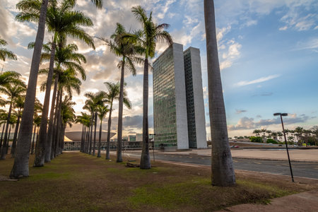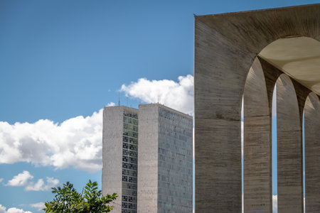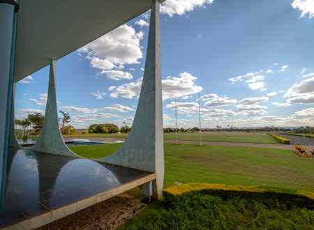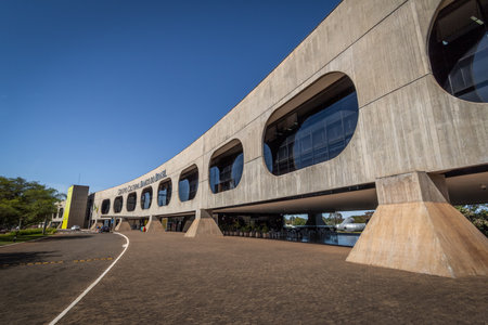 BRASILIA, BRAZIL - AUGUST 30, 2023: The Itamaraty Palace is the headquarters of the Ministry of Foreign Affairs of Brazil located in Brasilia and designed by architect Oscar Niemeyer