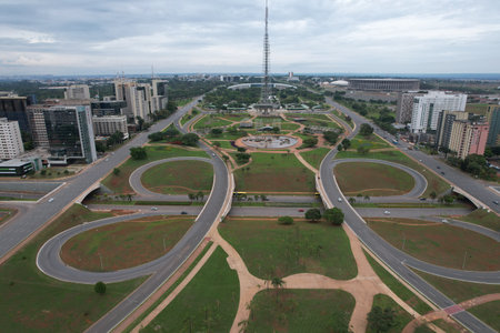 BRASILIA, BRAZIL - AUGUST 30, 2023: Aerial view of Monumental Axis of Brasilia, Brazil