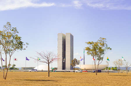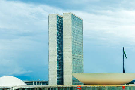 Brasília, Distrito Federal, Brazil, October 25 -2014: National Congress, located in the Plaza of the Three Powers, work of the architect Oscar Niemeyer.