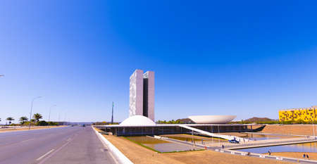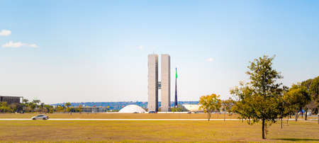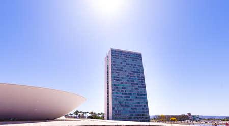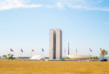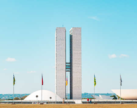 Brasilia, Brazil, August 7, 2018: The National Congress of Brazil in Brasilia, capital of Brazil, designed by Oscar Niemeyer, South America