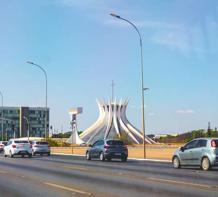 Brasilia, Brazil, August 7, 2018: Cathedral of Brasilia, Catedral Metropolitana Nossa Senhora Aparecida, Metropolitan Cathedral Of Our Lady Of Aparecida, designed by Oscar Niemeyer, South America