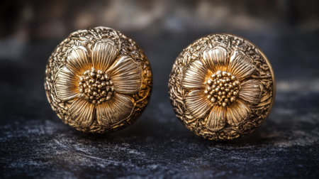 Captivating vintage gold floral earrings feature intricate detailing and craftsmanship. Perfect for fashion accessories, these stunning pieces offer elegance and charm.