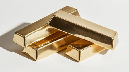This image features shiny gold bars elegantly stacked on a bright surface, reflecting light beautifully. It symbolizes wealth, luxury, and precious investment opportunities.
