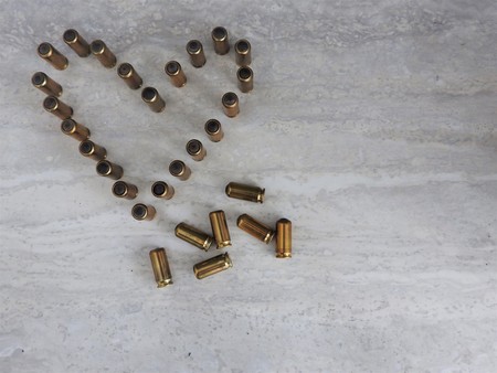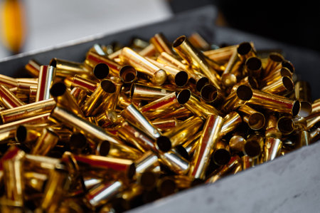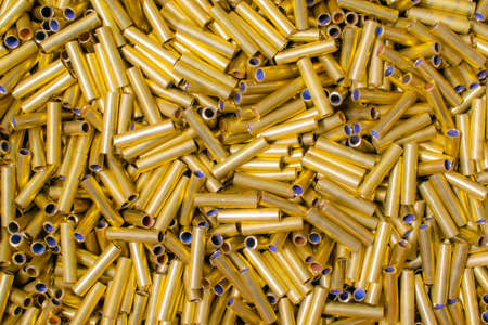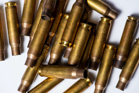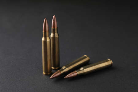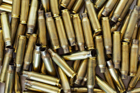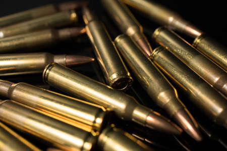 Closeup of a pile of .223 5.56x45 rifle bullets. Automatic rifle ammo.