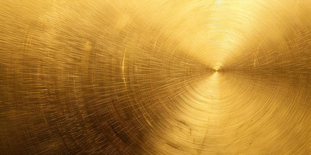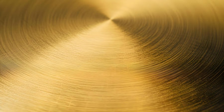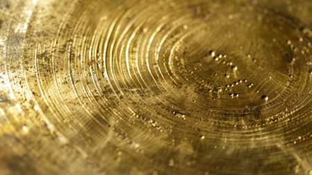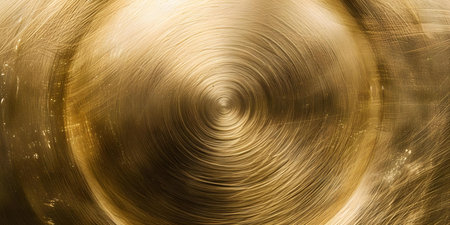 This image features a detailed close-up of a polished gold metal surface, showcasing a unique circular pattern with an elegant shine, ideal for diverse design projects.