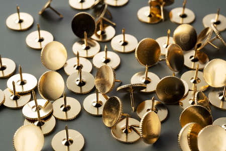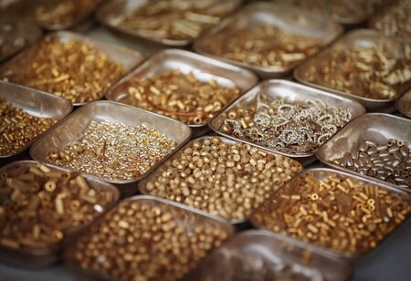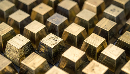 A detailed close-up image showcasing golden metal fasteners and bolts on a textured surface, highlighting the industrial setting and craftsmanship involved in manufacturing.