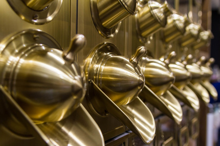Glistening Gold Plate Highlighting Brushed Metallic Finish. Concept Gold Plating, Metallic Finish, Brushed Texture