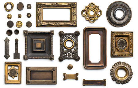 collection of various vintage frames on white background. each one is shot separately