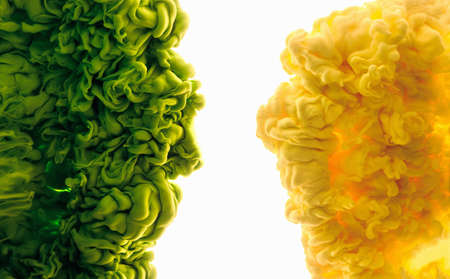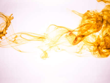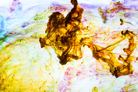 Ink swirl in a water on color background. The paint splash in the water. Soft dissemination a droplets of colored ink in water close-up. Abstract background. Explosion of splashes acrylic ink.