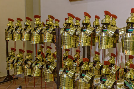 Gold-colored Roman armor in the city Gerona of Spain, 13 May 2017