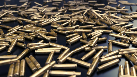 3D Rendering, Close up the realistic of shells bullets falling on the floor, darkness black background.