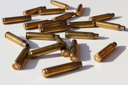 shoot casing .223 shells string and white background . High quality photo