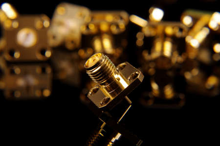 Flange type SMA coaxial connector for high frequency RF applications isolated on the black background