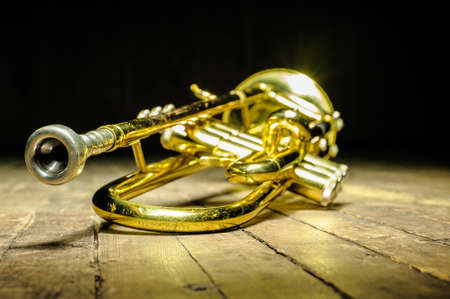 Brass instrument - trumpet on stage with backlight