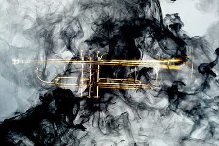 Abstract smoke billows around jazz brass trumpet