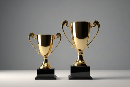 A captivating arrangement of shining gold trophies set against a bright background, representing achievement and success in competitions and celebrations of excellence.