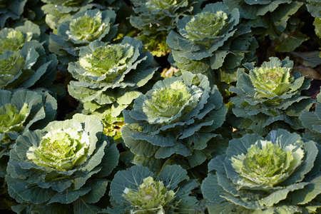 Close up of decorative cabbage, ornamental cabbage plants. Background of green decorative cabbage. Nature pattern. Organic texture. Fresh Cabbage