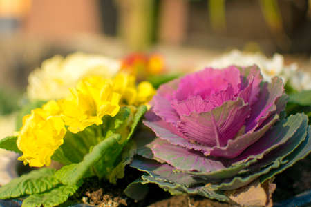 Ornamental cabbage in botanical garden, flowers and plants, environment, cut flowers.