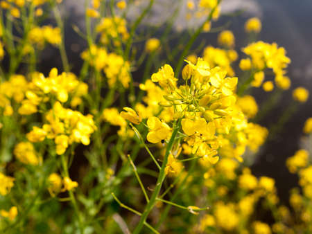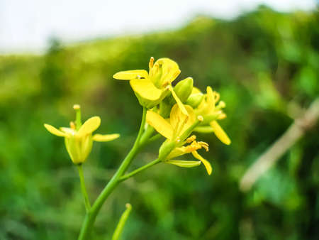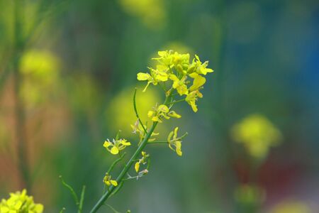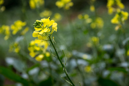 Close-up Focus A Beautiful Blooming Yellow rapeseed flower with blurry background