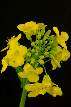 Close-up Portrait of a blossoming rapeseed - isolated in front of a black background