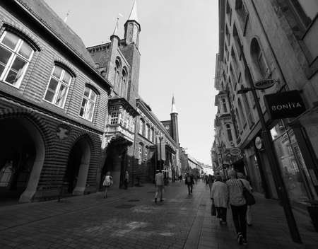 LUEBECK, GERMANY - CIRCA MAY 2017: Luebeck Rathaus (city hall) in black and white