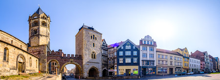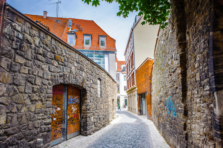 ERFURT, GERMANY - JUN 16, 2014:Architecture of the touristic part of the city of Erfurt, Germany. Erfurt is the Capital of Thuringia and the city was first mentioned in 742