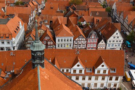 Celle, Germany - April 19, 2014: Photograph of the rooftops of Celle taken from the top of the city church.