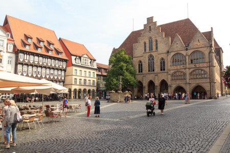 Hildesheim, Germany - 1 July 2019: Historical market square in Hildesheim on Germany