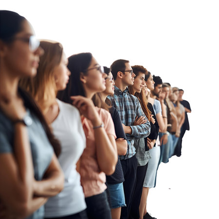 A captivating image showcasing a group of diverse young adults standing together, representing a mix of different ethnic backgrounds, emphasizing unity and modern diversity.