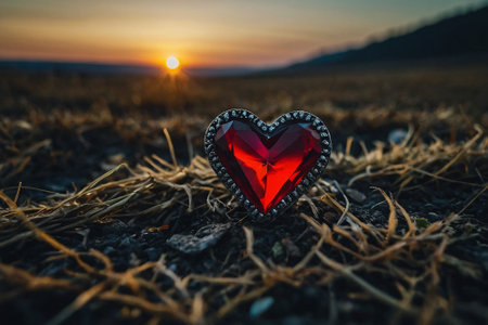 Artistic photo of a man's silhouette holding a heart shape against a sunset backdrop. The image evokes emotional visual poetry with a cinematic and romantic atmosphere.