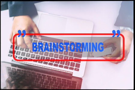 Hand and text BRAINSTORMING with vintage background. Technology concept.