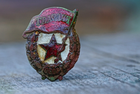 old guards soviet medal on a gray table