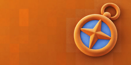An orange compass rose icon with a ring on a textured orange background. Clear details and vibrant...