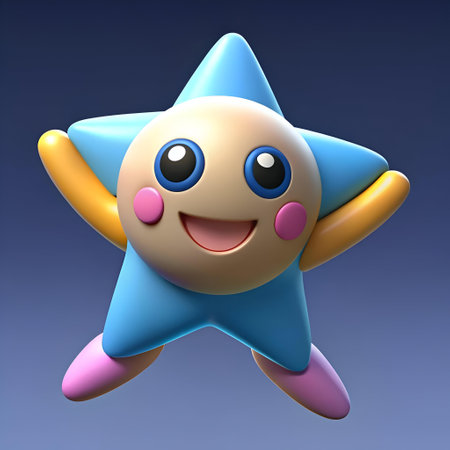Cute 3D cartoon star with big eyes and a happy smile. Perfect for kids' apps. games. or social media.
