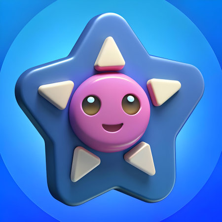 Cute 3D star shaped character with a friendly face. perfect for playful apps. children's products. or branding.