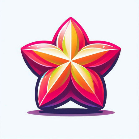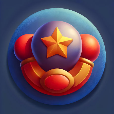 A vibrant. 3D icon featuring a gold star nestled within a purple orb. surrounded by red and gold elements. Perfect for mobile game UI. app design. or children's products.