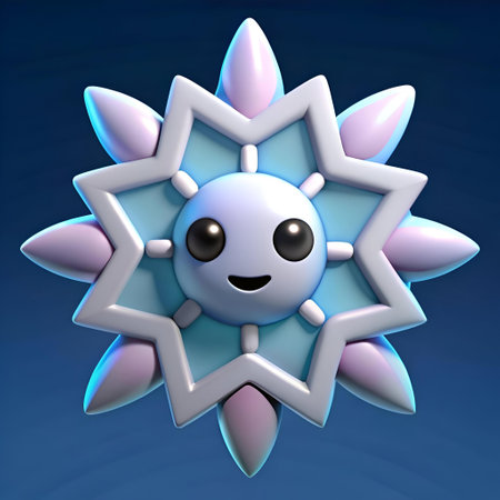 Cute. 3D cartoon snowflake with a smiling face. perfect for winter designs. holiday decorations. or children's projects.