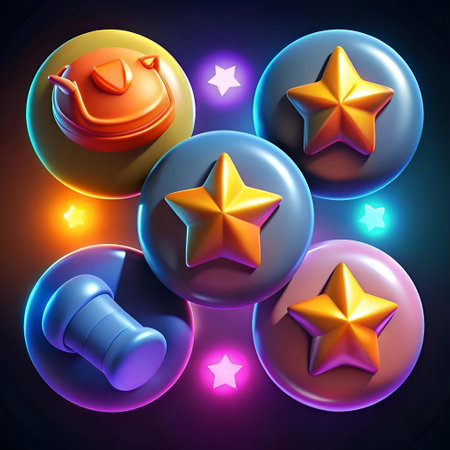 Glossy and vibrant 3D icons in a playful design. Perfect for mobile game UI. app design. or adding a touch of fun to your projects.